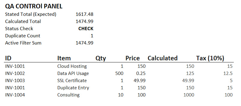 If your data starts in PDFs (invoices, POs, bank statements), you can still use every check above. The only difference is how you get the table into Excel.